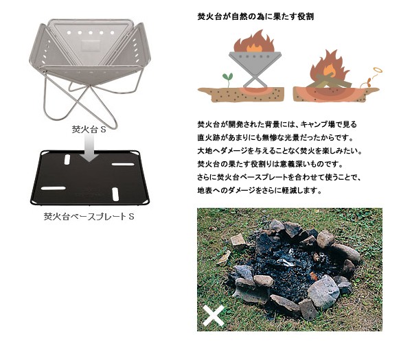ベースプレートは、焚火台からこぼれ落ちる灰や放射熱が発するダメージから地表を守ります。
