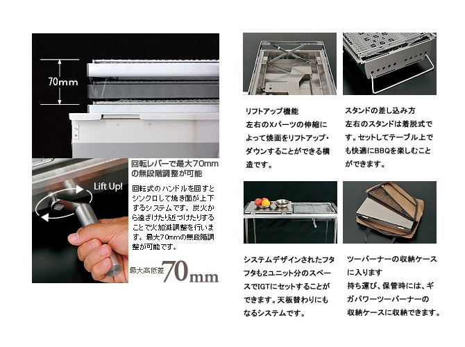 アイアングリルテーブルの2ユニット分のスペースにセットできるワイドなBBQ-BOXです。