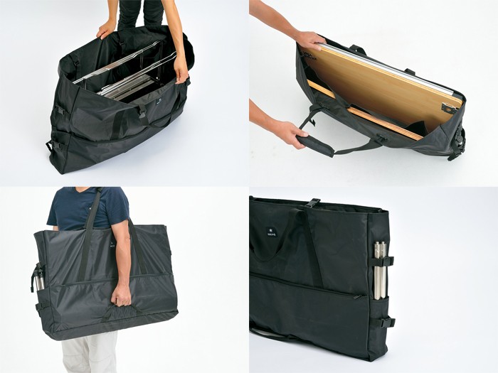 3ユニットのIGTテーブルをメインに、各種竹天板、脚部などのパーツをサブポケットを使いながら、綺麗に収納できます。