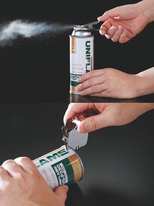 クリップ式なので穴をあけずに挟むだけでカセットボンベ内の残ガスを安全に抜くことができます。自治体によりカセットボンベに穴をあける必要があっても、簡単に穴があけられます。